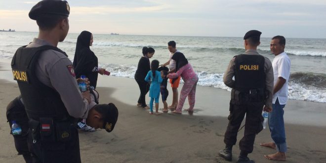 Tribratanews-polreslhokseumawe-com- Antisipasi kejahatan di tempat objek wisata, Kapolres Lhokseumawe Kerahkan Personil Sabhara melakukan pengamanan dan patroli di tempat objek wisata di Kota Lhokseumawe khususnya di tempat wisata Goa Jepang serta pantai ranjung dan lainnya. Senin (12/9/2016),