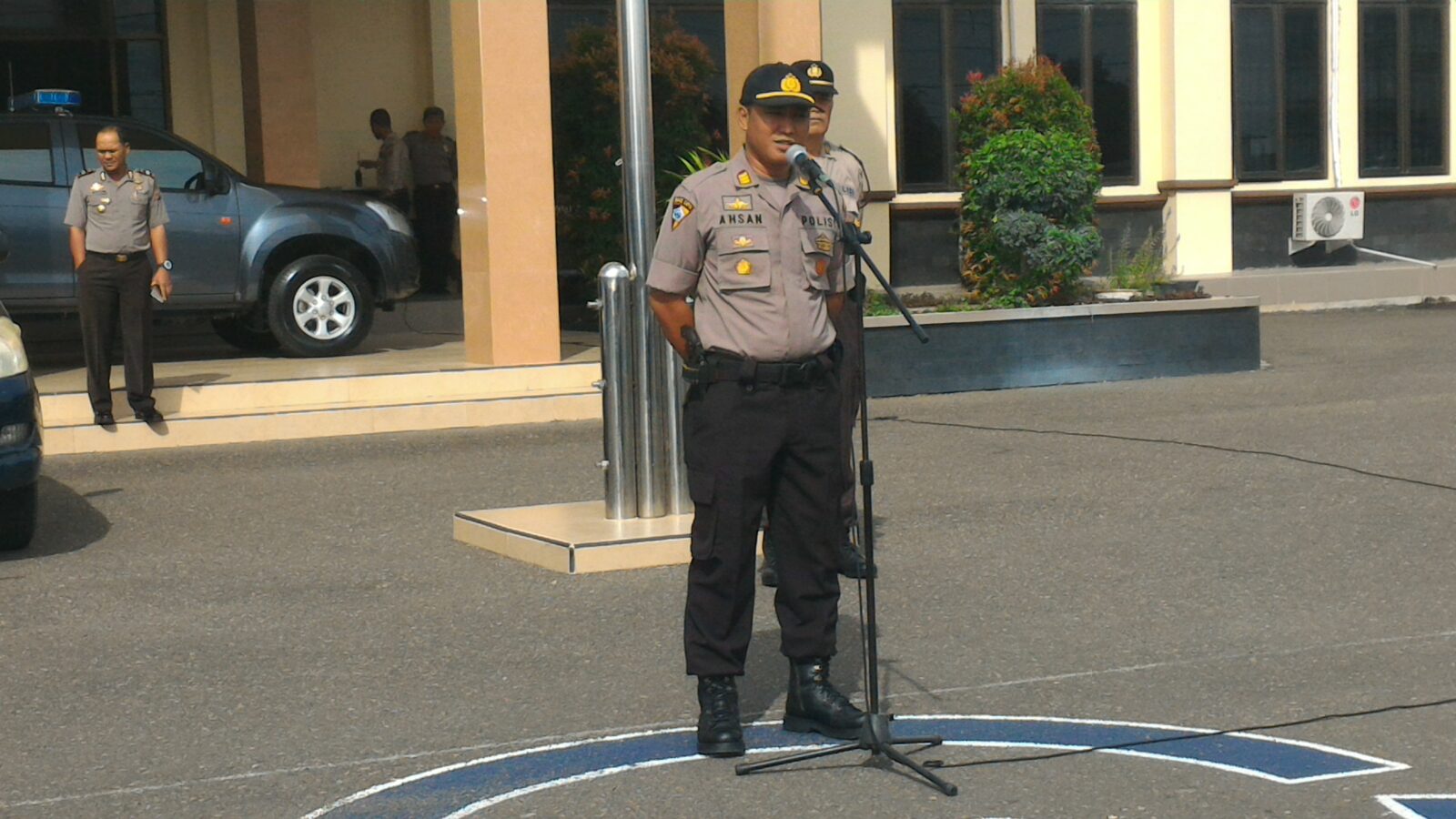 Tribratanews-tribratanews-reslhokseumawe.aceh.polri.go.id- Kapolres Lhokseumawe AKBP Hendri Budiman. SH, S.Ik, MH di wakili Kabag Ops AKP Ahzan. S.Ik, MSM pimpin apel pengamanan di Halaman Mapolres Lhokseumawe dalam rangka pengamanan pendaftaran paslon Walikota Lhokseumawe dan Wakil Walikota Lhokseumawe serta Bupati dan Wakil Bupati Aceh Utara di hari kedua masa pendaftaran paslon. Kamis Pagi (22/9/2016)