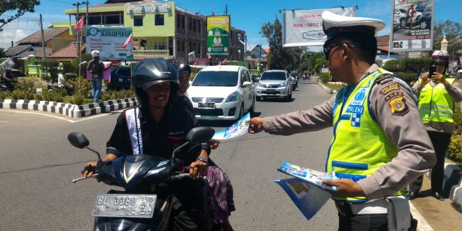 tribratanews-tribratanews-reslhokseumawe.aceh.polri.go.id- Satuan Polisi Lalu lintas Polres Lhokseumawe sebar brosur himbauan kepada pengguna jalan untuk membudayakan keselamatan berlalu lintas.