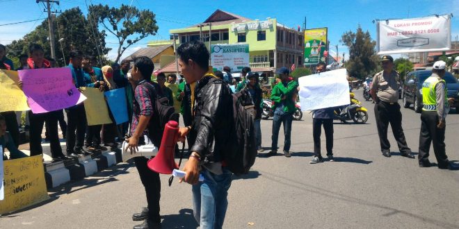 Tribratanews-polreslhokswumawe.com-Puluhan Personil Polres Lhokseumawe berikan pelayananan pengawalan dan pengamanan unjuk rasa oleh gerakan mahasiswa serambi makkah.