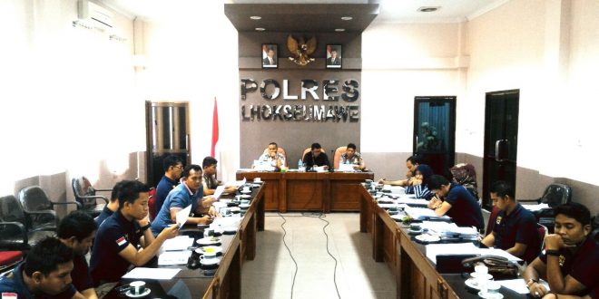 Tribratanews-tribratanews-reslhokseumawe.aceh.polri.go.id- penyidik jajaran Polres Lhokseumawe lakukan gelar perkara biasa terkait penyidikan kasus di aula Polres Lhokseumawe.”kamis pagi 1/12/2016