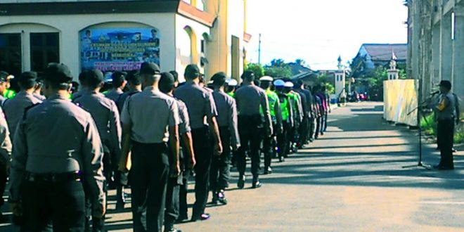 Tribratanews-tribratanews-reslhokseumawe.aceh.polri.go.id- Pimpin apel pagi Kabag Ops Polres Lhokseumawe Kompol Ahzan, S.Ik, SH, MSM bina dan latih personil polres lhokseumawe dalam baris-berbaris sesuai peraturan baris berbaris (PBB) di halaman mapolres Lhokseumawe.” Sabtu pagi 14/1/2017