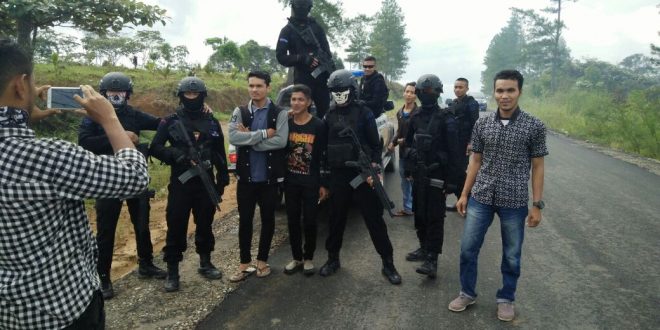 Tribratanews-tribratanews-reslhokseumawe.aceh.polri.go.id- Berfoto ria, warga bangga Foto Selfie dengan BKO Brimob dalam rangka pengamanan pilkada Di Jalan KKA Kecamatan Nisam Antara Kabupaten Aceh Utara yang berbatasan Lansung dengan Kabupaten Bener Meriah.” Minggu 22/1/2017