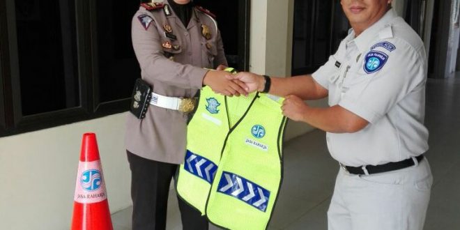 Tribratanews-tribratanews-reslhokseumawe.aceh.polri.go.id- Kasat Lantas (Kaslan) Polres Lhokseumawe teriman bantuan rompi dan traffic cone atau pembatas jalan dari pihak Jasa Raharja wilayah Lhokseumawe.