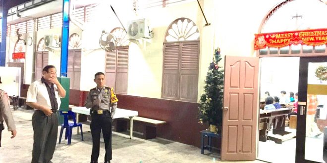 Tribratanews-polreslhokswumawe.com-Kapolres Lhokseumawe AKBP Hendri Budiman, SH, S.Ik, MH cek langsung pengamanan sejumlah gereja di Kota Lhokseumawe.” Sabtu malam 31/12/2016