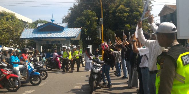 hari ini kita sosialisasi dan imbauan tertib berlalulintas dalam rangka operasi simpatik rencong 2017, dengan melibatkan komunitas pelajar adek-adek kita dari SMA yang tergabung dalam komunitas pelantas untuk memberikan ilustrasi atau demontrasi tentang berkendaraan yang baik.” ujarnya kepada awak media