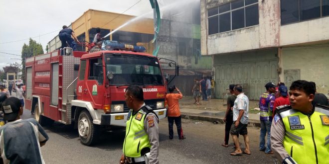 tribratanews-tribratanews-reslhokseumawe.aceh.polri.go.id-Dua toko berlantai dua terbakar di Jalan Stasiun Pasar Cunda, Kecamatan Muara Dua, Lhokseumawe.” Rabu, 29 Maret 2017, sekitar pukul 11.50 WIB.