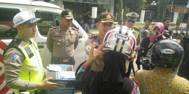 Tribratanews-tribratanews-reslhokseumawe.aceh.polri.go.id- Sejumlah pengendara sepeda motor di Kota Lhokseumawe mendapatkan helm dan cokelat gratis yang dibagikan oleh personel polisi dari Satuan Polisi Lalulintas Polres Lhokseumawe serta mengahadirkan dua badut untuk menghibur pengguna jalan.