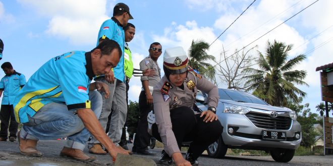 Tribratanews-tribratanews-reslhokseumawe.aceh.polri.go.id- Sat Lantas Polres Lhokseumawe gelar Operasi Simpatik dengan melakukan penambalan Lubang bersama komunitas club mobil retceh dan sabir di jalan Medan-Banda Aceh Desa Panggoi Kecamatan Muara Dua Kota Lhokseumawe.” Jum’at pagi 17/3/2017