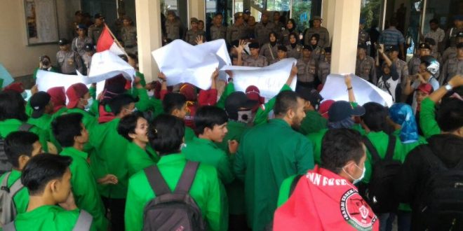 LHOKSEUMAWE- Polres Lhokseumawe kawal aksi unjuk rasa yang digelar oleh mahasiswa peduli pemerintah yang terdiri dari BEM Fakultas Hukum unimal, DPM FK unimal BEM, FT Unimal dan Smur di Kantor Walikota Lhokseumawe.” Kamis siang (6/5/2017)