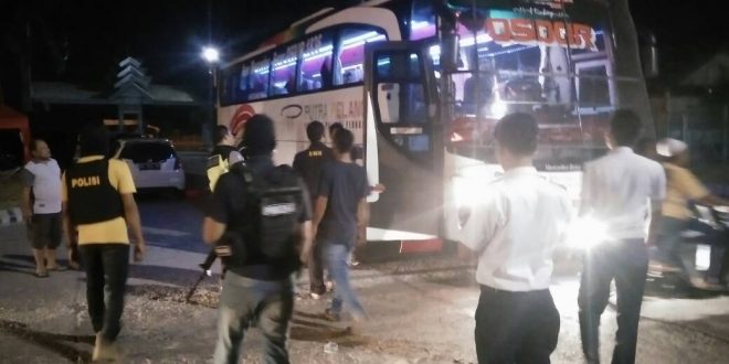 Lhokseumawe- Personil Kepolisian Resor Lhokseumawe bersama BNNK Lhokseumawe melakukan ters urine terhadap sejumlah supir bus angkutan di terminal bus Tipe A Kota Lhokseumawe. Dari hasil pemeriksaan urine tersebut tiga supir terbukti positif pemakai narkoba.” Kamis (22/6/2017) sekitar pukul 01.00 WIB
