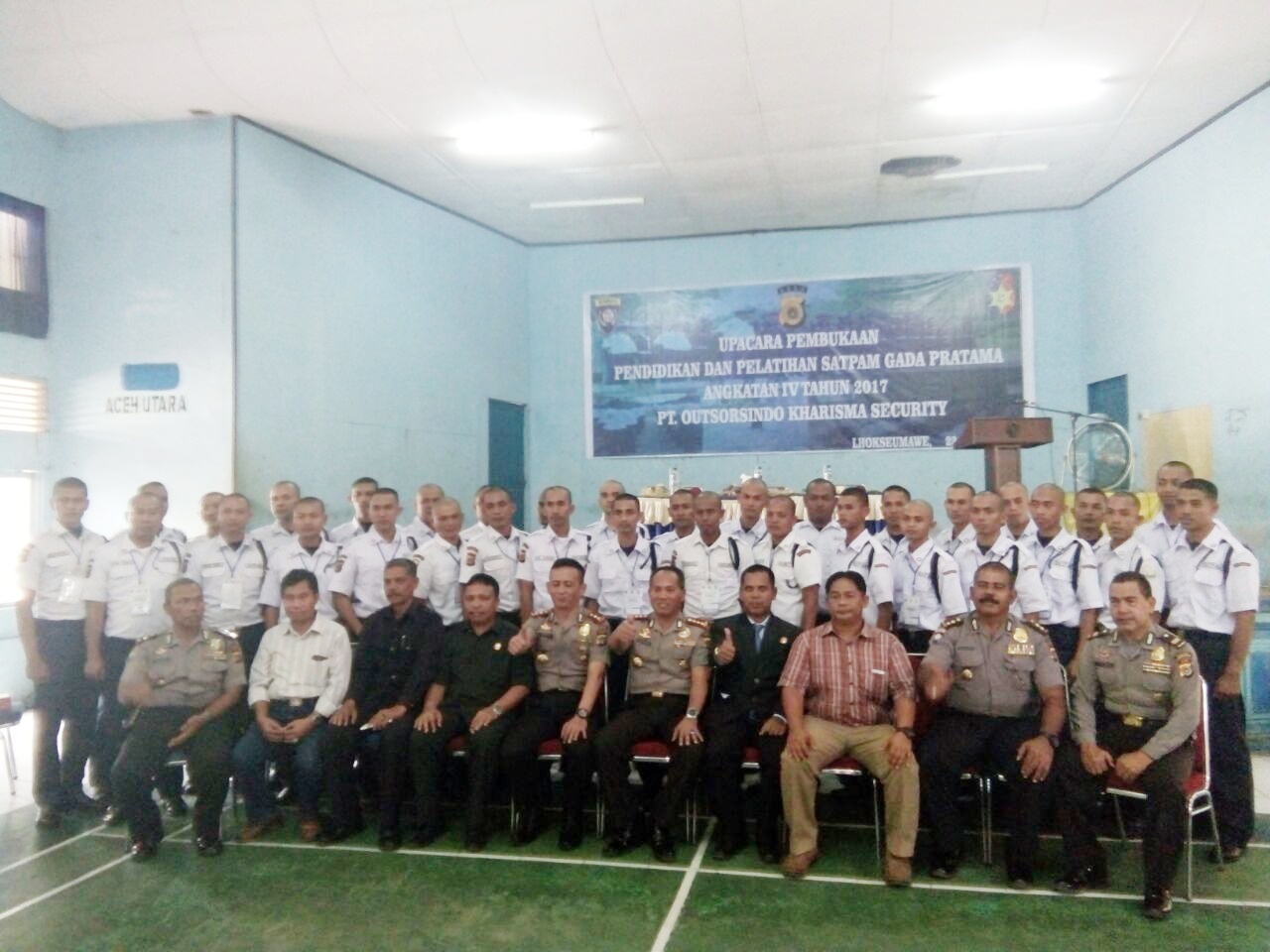LHOKSEUMAWE- Kapolres Lhokseumawe hadiri pembukaan pelatihan dan pendidikan satpam Gada Pratam angkatan ke IV tahun 2017, acara pembukaan tersebut di gelar oleh BPJP PT. Outsorsindo Kharisma Security (PT. OKS ) di Gedung Olah raga SKB (Sanggar kegiatan belajar ) Desa Keudee Aceh Kecamatan Banda Sakti Kota Lhokseumawe.” Sabtu pagi (22/7/2017) sekitar pukul 10.00 WIB