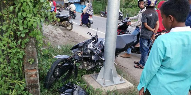LHOKSEUMAWE- Satu unit Sepeda Motor jenis Vixion mengalami kecelakaan lalu lintas di Desa Beunot Kecamatan Syamtalira Bayu Kabupaten Aceh Utara wilayah hukum Polres Lhokseumawe. Kecelakaan tersebut di duga berawal dari Bersenggolnya kenderaan vixion dengan kenderaan lain.” Sabtu (8/7/2017)