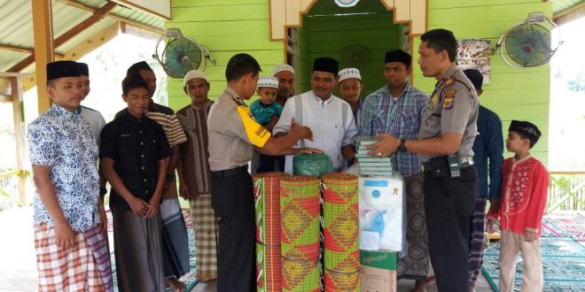 LHOKSEUMAWE-Kapolsek Muara Satu AKP Ahmad Yani, SE. melakukan kunjungan sekaligus menyerahkan bantuan berupa sarana ibadah ke Pesantren/Dayah TAHSINUL FATA di Jalan Pelabuhan Desa Blang Naleung Mameh Kecamatan Muara Satu Kota Lhokseumawe.”Kamis 6/7/2017 pukul 14.00 Wib.