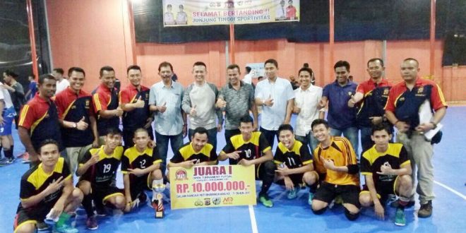 LHOKSEUMAWE- POP Polres Lhokseumawe berhasil menjurai Turnamen Futsal Kapolres Lhokseumawe CUP I, POP Polres Lhokseumawe keluar sebagai juara setelah berjuang keras di final dengan membungkam Be Squad Lhokseumawe, 3–2, di Lapangan Garuda Futsal, Minggu malam (23/7/2017).