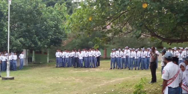 LHOKSEUMAWE- Saweu Sikulah, Kepala Kepolisian Resor Lhokseumawe Sektor Muara Satu AKP.Ahmad Yani. SE pimpin Upacara Bendera, senin pagi (17/7/2017) di SMK Negeri 7 Desa Blang Panyang Kecamtan Muara Satu Kota Lhokseumawe.