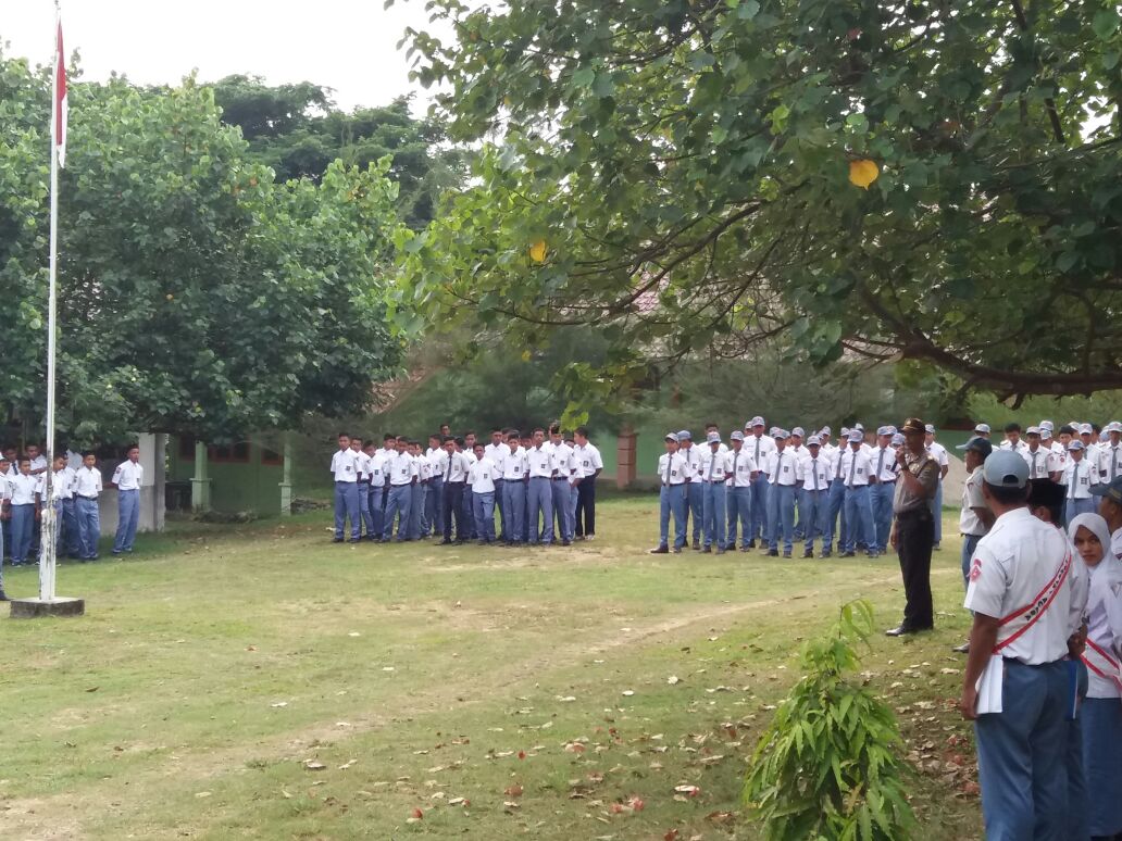 LHOKSEUMAWE- Saweu Sikulah, Kepala Kepolisian Resor Lhokseumawe Sektor Muara Satu AKP.Ahmad Yani. SE pimpin Upacara Bendera, senin pagi (17/7/2017) di SMK Negeri 7 Desa Blang Panyang Kecamtan Muara Satu Kota Lhokseumawe.
