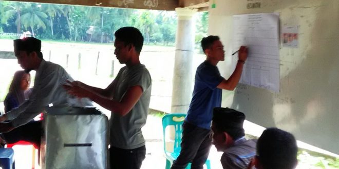 Lhokseumae –Personil Polsek Samudra Polres Lhokseumawe beserta Babinsa Koramil 06/Samudra Jajaran Kodim 0103/Aceh Utara mengamankan Pemilihan Geuchik (Kepala Desa) Krueng Baro Blang Mee Kecamatan Samudra Kabupaten Aceh Utara bertempat di Menusah desa setempat.” Kamis (24/08/2017).