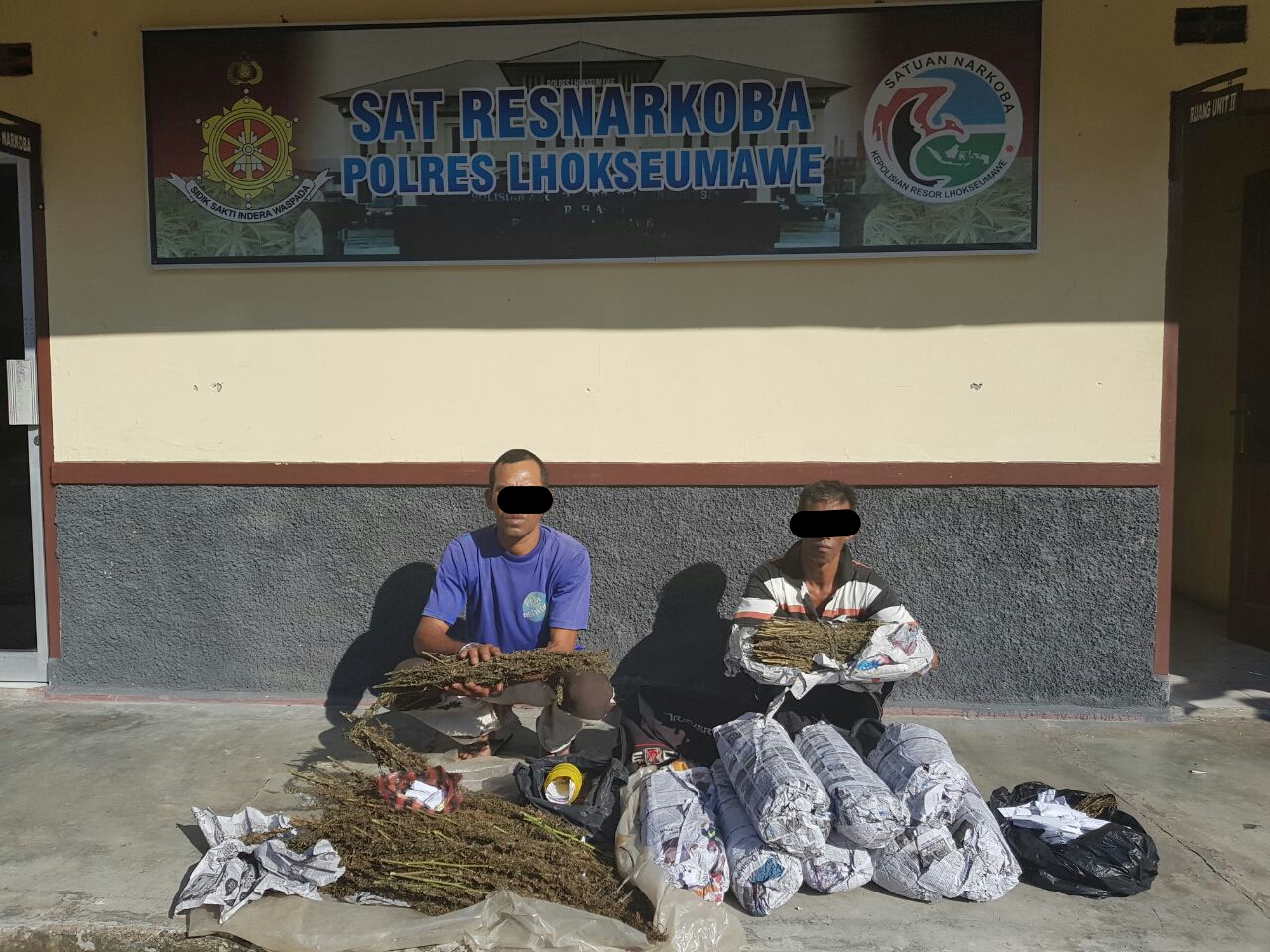 Kapolres Lhokseumawe AKBP Hendri Budiman, SH, S. Ik, MH melalui Kasat Narkoba AKP Mukhtar mengatakan, kedua tersangka ditangkap karna diduga edarkan Narkoba jenis ganja.