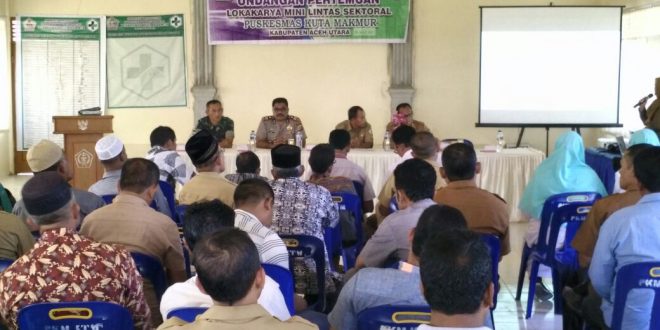 Lhokseumawe- Kapolsek Kuta Makmur hadiri Loka karya mini Sektoral Puskesmas Kuta Makmur di Aula kantor camat Kuta Makmur Kabupaten Aceh utara wilayah hukum Polres Lhokseumawe.” Selasa (29/8/2017) pukul 10.00 Wib