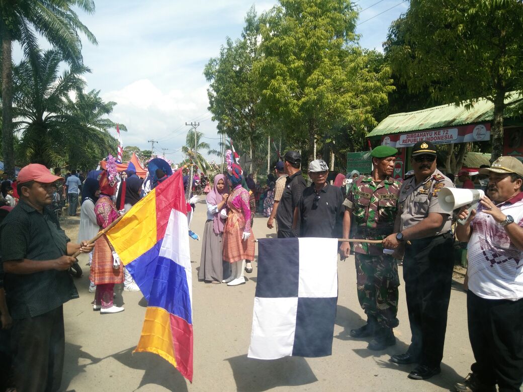 Lhokseumawe- Kapolsek Kuta Makmur AKP Pitriadi melepas pawai karnaval meriahkan HUT RI ke 72 di lapangan Kuta Makmur, Jumat (18/8/2017) sekitar pukul 14.30 WIB.