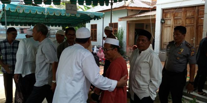 LHOKSEUMAWE- Kepala Kepolisian Resor Lhokseumawe Sektor Muara satu bersama anggota menyambangi rumah duka Almarhum M. Yasin bin Tgk. H. Yahya Peukan (Rados), Kamis (3/8/2017).