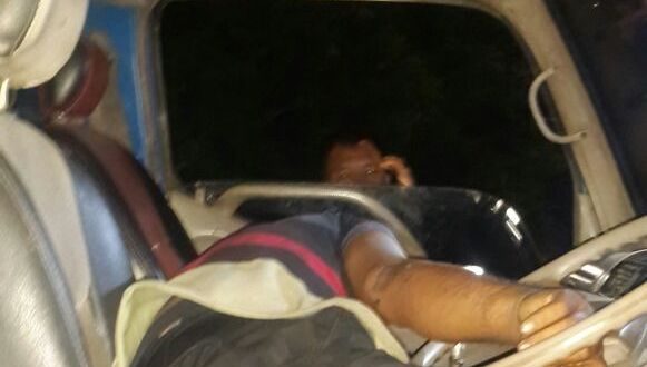 Setelah kernet turun dan melihat mobil, tiba tiba mobil berhenti dalam kondisi mesin masih hidup.