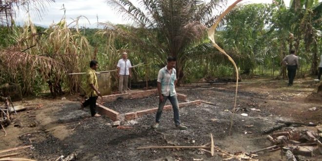 Kejadian itu pada Minggu (16/7/2017), saudara Al, saksi menelpon pelapor memberitahukan bahwa rumah milik pelapor telah terbakar. Mendengar informasi tersebut pelapor kemudian mendatangi kebunnya dan melihat saudara Al sudah berada di lokasi kejadian.”jelas AKP budi Nasuha