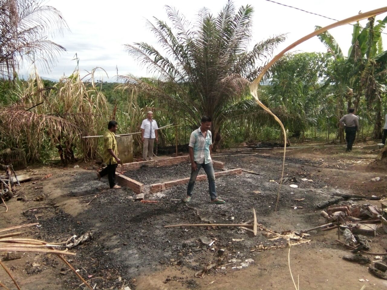 Kejadian itu pada Minggu (16/7/2017), saudara Al, saksi menelpon pelapor memberitahukan bahwa rumah milik pelapor telah terbakar. Mendengar informasi tersebut pelapor kemudian mendatangi kebunnya dan melihat saudara Al sudah berada di lokasi kejadian.”jelas AKP budi Nasuha