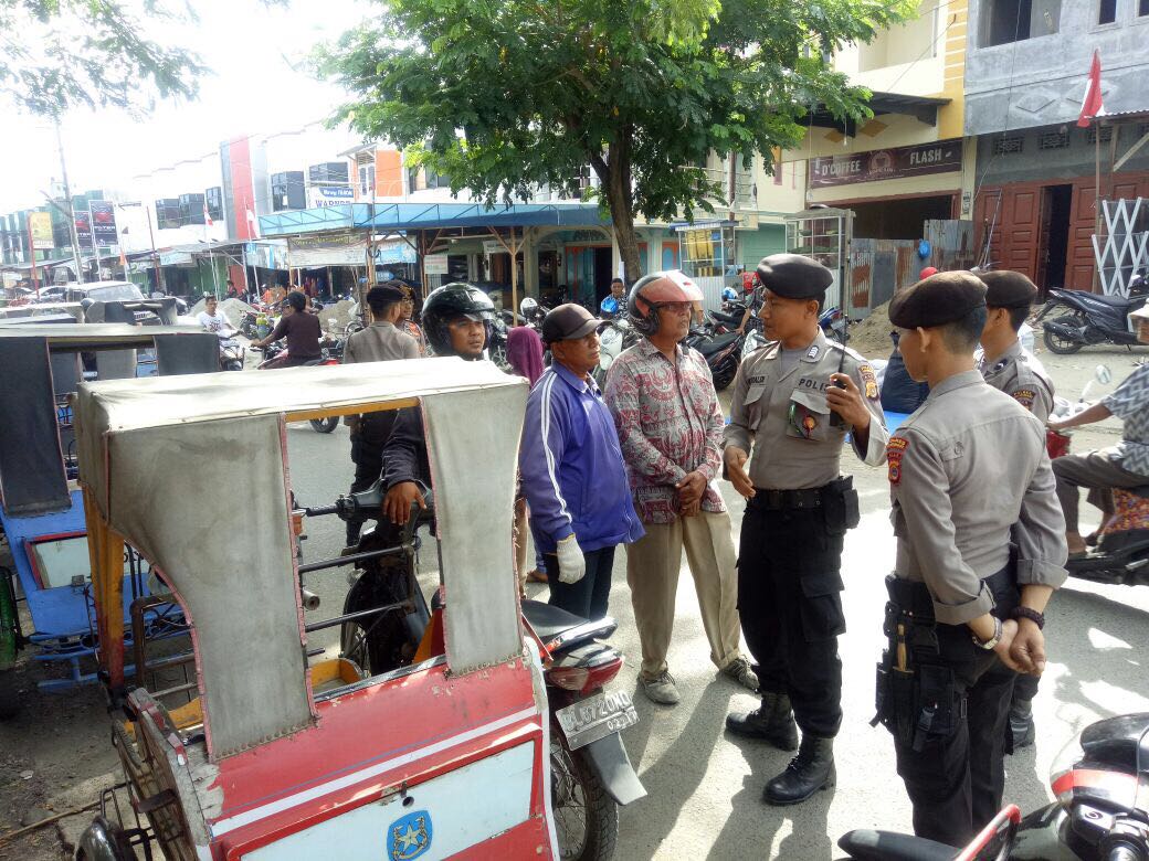 LHOKSEUMAWE- Tim Patroli Sabhara Polres Lhokseumawe sampaikan pesan kamtibmas kepada petugas parkir dan pengemudi becak bermotor agar memarkirkan kenderaan dengan tertib dan tidak mengghambat pengguna jalan.” Kamis siang (3/8/2017)