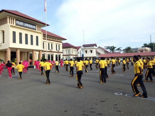 Diprakarsai Polwan, senam pagi bersama menjadi kegiatan utama personil Polres Lhokseumawe dan bhayangkari di Mapolres Lhokseumawe, selanjutnya puluhan Polwan akan melakukan kegiatan anjangsana dengan memberikan bantuan sembako kepada anak yatim.” Jum’at pagi (25/8/2017)