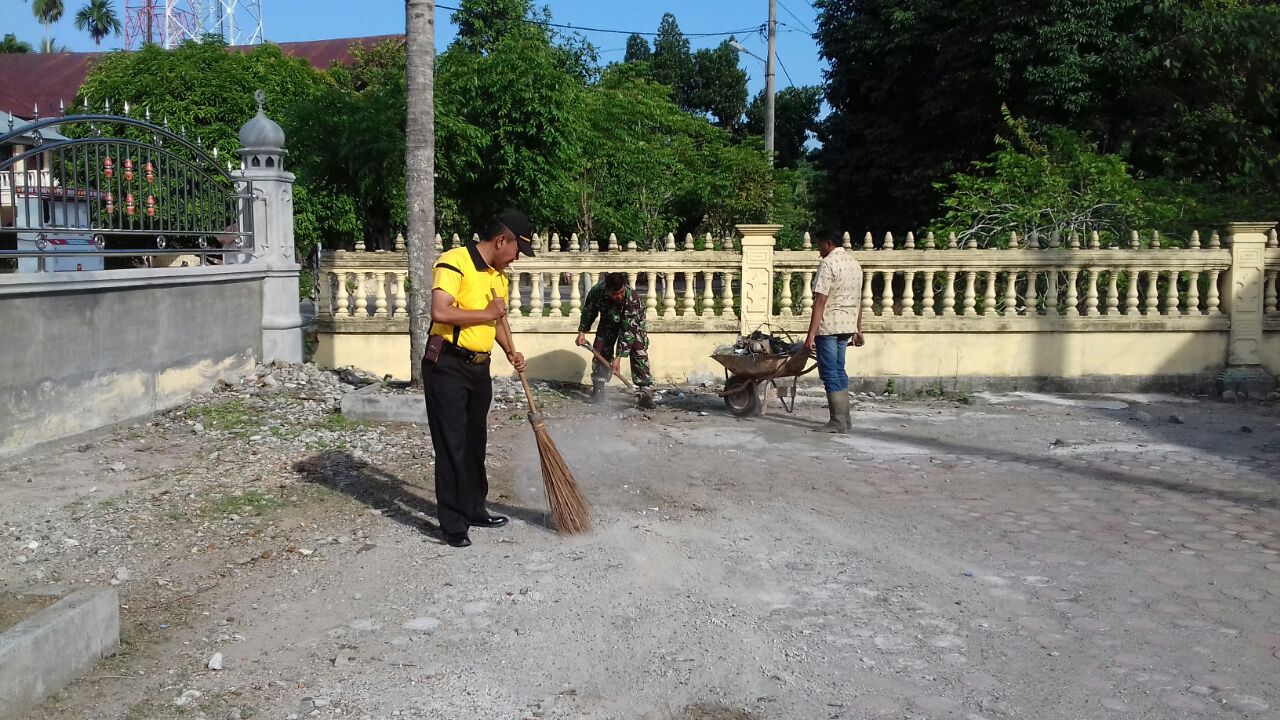 Lhokseumawe- Sambut Idul Adha 1438 H tahun 2017, Kepala Kepolisian Resor Lhokseumawe Sektoe Simpang Kramat hadiri Gotong Royong bersama di Mesjid Babussalam Kecamatan Simoang Kramat Kabupaten Aceh Utara. “Minggu pagi (20/8/2017)