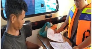 “Kita rutin melakukan patroli. Namun ini menjelang HUT RI. Kita sebagai bangsa yang masih punya sikap nasionalisme tinggi membagikan bendera merah putih kepada para nelayan. Tujuannya agar dipasang di kapal masing- masing dan juga saling silaturrahmi, “ungkapnya
