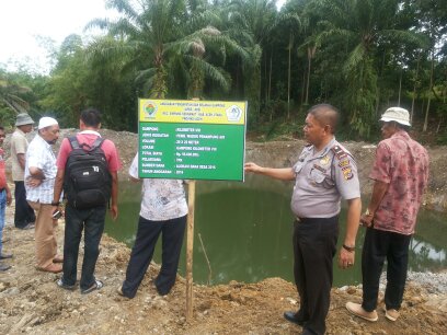 LHOKSEHMAWE- Kepala Kepolisian Resor Lhokseumawe Sektor Simpang Kramat tinjau waduk penampungan air di areal sawah Desa KM 8 Kecamatan Simpang Kramat Kabupaten Aceh Utara. ” Minggu Siang (6/8/2017)