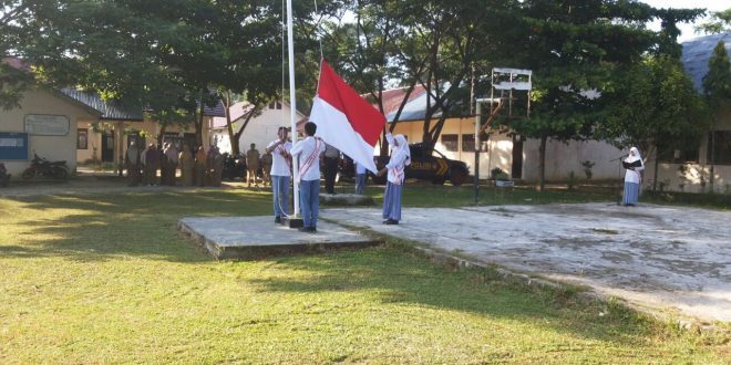 Lhokseumawe- Kapolsek Kuta Makmur AKP Pitriadi mengingatkan kepada seluruh siswa di MAN 5 Aceh Utara, di Kemukiman Beureghang, Kuta Makmur agar menjauhi narkoba jenis apapun, Senin (21/8/2017) saat pelaksaan upacara rutin.