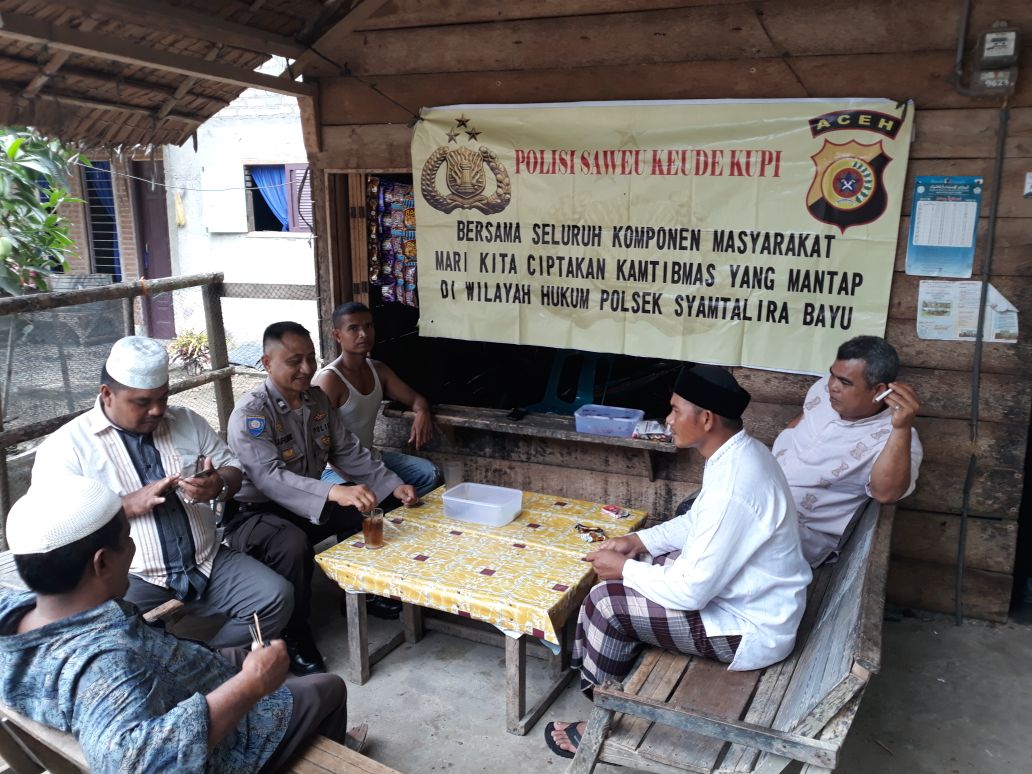 Kapolres Lhokseumawe AKBP Hendri Budiman, SH, S.Ik, MH melalui Kapolsek Syamtalira Bayu Iptu Zeska Julian mengatakan, Sabtu ini, kami kembali memberikan pesan kamtibmas kepada masyarakat melalui pendekatan program Saweu Keude Kupi.” ujarnya Sabtu sore (16/9/2017)