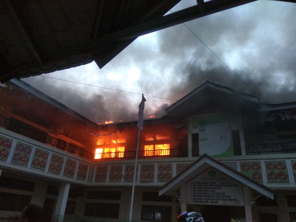 Pihak sekolah memadamkan api dengan cara menyiram api tersebut dengan air, selanjutnya penjaga sekolah memotong kabel yang diduga menjadi penyebab terbakar tersebut dan pukul 18.15 wib, saat kondisi sekolah sudah sepi, terlihat api dari lantai 2 ruangan Perpustakaan sudah membesar (titik awal api belum diketahui). Melihat kejadian tersebut warga langsung menghubungi pihak pemadam kebakaran.
