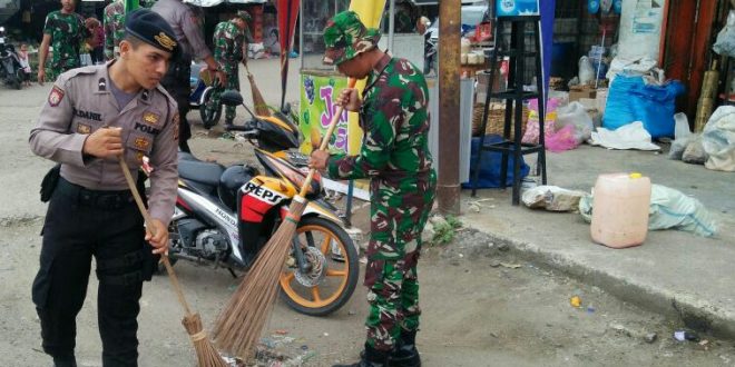 Lhokseumawe- Polres Lhokseumawe bersama dengan TNI setempat menggelar kegiatan Karya Bakti di pasar pajak impres kota lhokseumawe dan pasar pusong Kecamatan Banda sakti Kota Lhokseumawe.” Rabu pagi (27/9/2017)