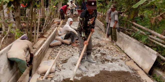 Lhokseumawe- Bukan hanya mengawasi proyek pembangunan sumber APBG, Bhabinkamtibmas Polsek Kuta Makmur Bripka Hamzaya juga ikut memegang cangkul untuk bergotong royong bersama masyarakat dengan membangun jalan rabat beton di Desa Paya kambuk Kecamatan Meurah Mulia Kabupaten Aceh Utara wilayah hukum Polres Lhokseumawe.