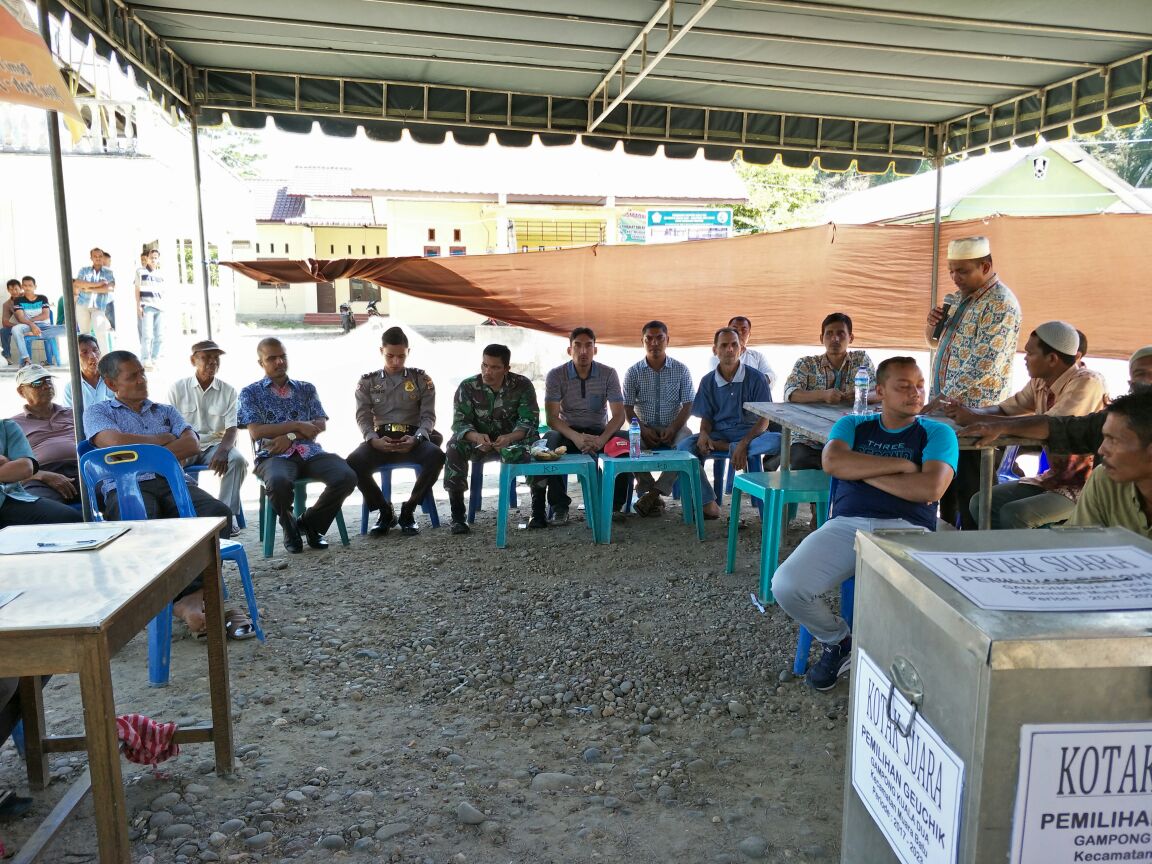 Lhokseumawe- Aparat keamanan TNI-Polri berikan pelayanan pengamanan dalam pemilihan geuchik Gampong Kuala Dua kecamatan Muara Batu Kab. Aceh Utara.” Kamis (19/10/2017)