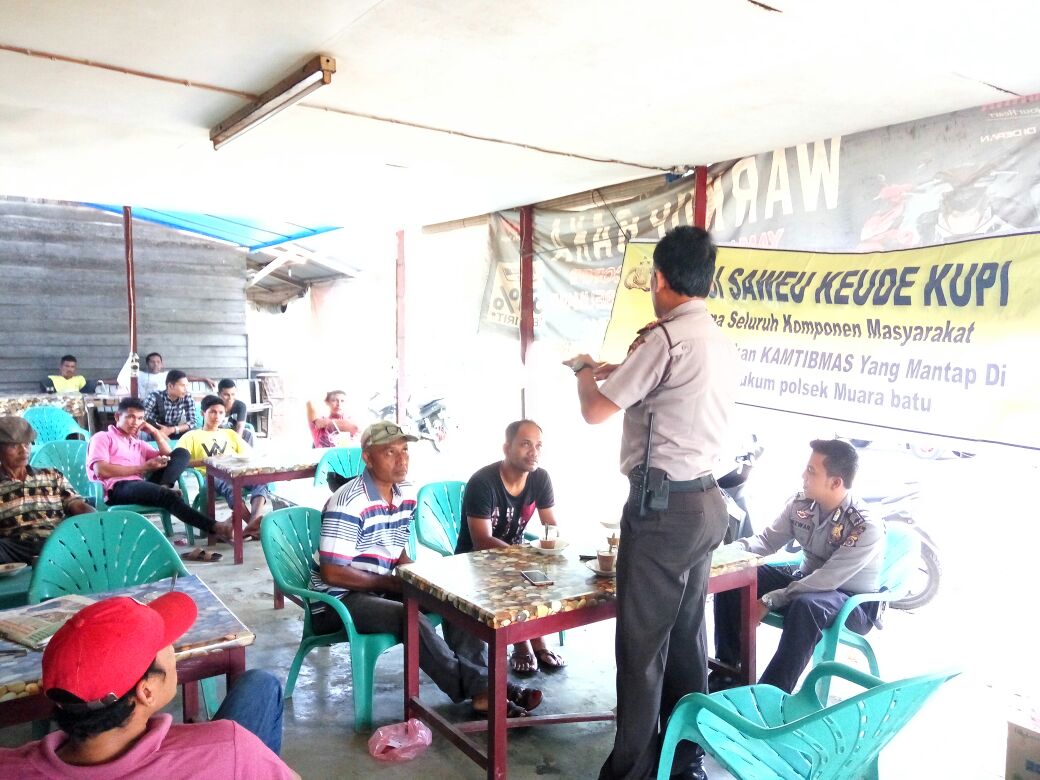 Lhokseumawe- Kapolsek Muara batu imbau masyarakat bijak gunakan media. Hal itu disampaikan saat berikan pesan kamtibmas di Warung Bang baka Desa Keude Mane, Kecamatan Muara Batu, Kabupaten Acut, Aceh. ‘ Rabu (4/10/2017)