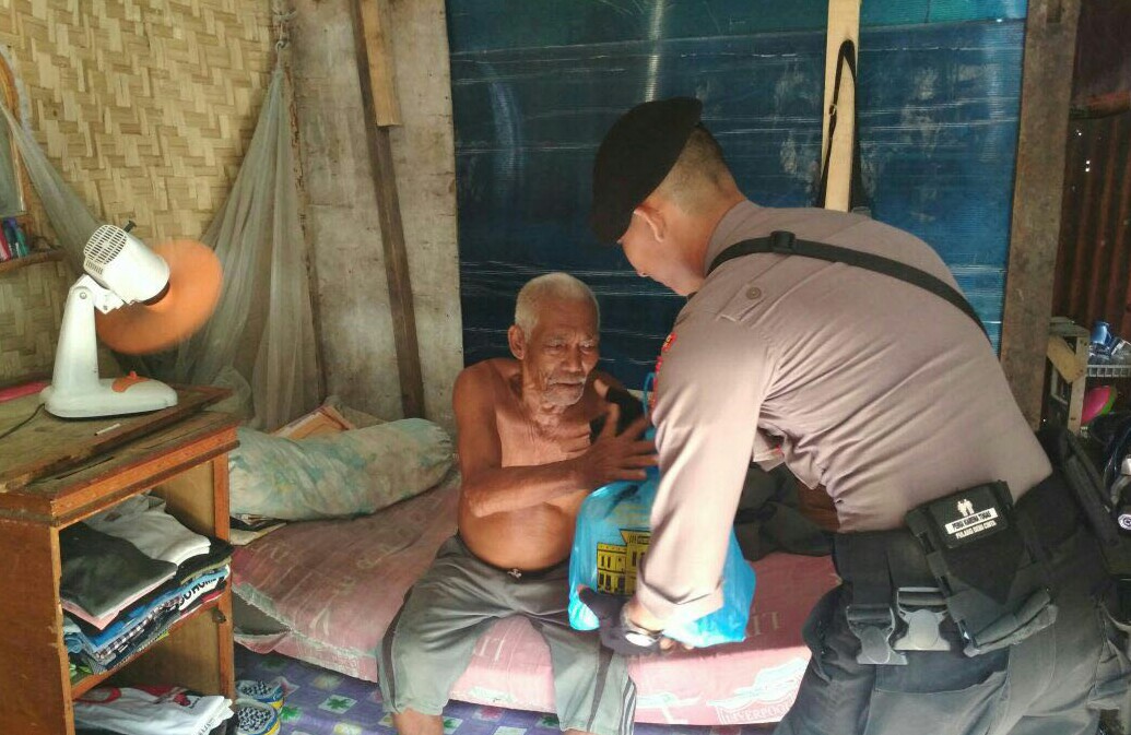 LHOKSEUMAWE- Patroli rutin Sat Sabhara Polres Lhokseumawe kembali berbagi sembako kepada kaum fakir miskin dan duafa di Gampung Jawa Baru Kota Lhokseumawe.” Rabu sore (04/10/2017)