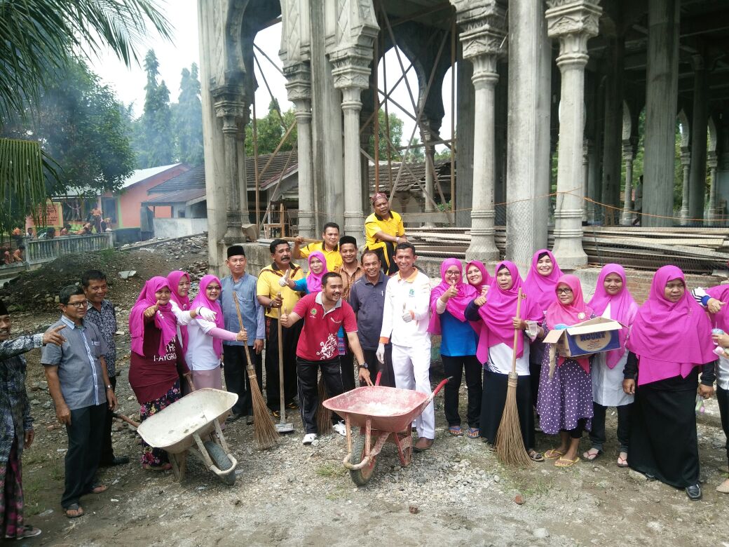 Lhokseumawe- Polisi bergotong royong bersama lintas sektor, instansi dan masyarakat di Messjid Besar Darul Muhya dan Puskesmas Kecamatan Kuta Makmur Kabupaten Aceh Utara,” Jumat (6/10/2017) sekira pukul 08.30 Wib