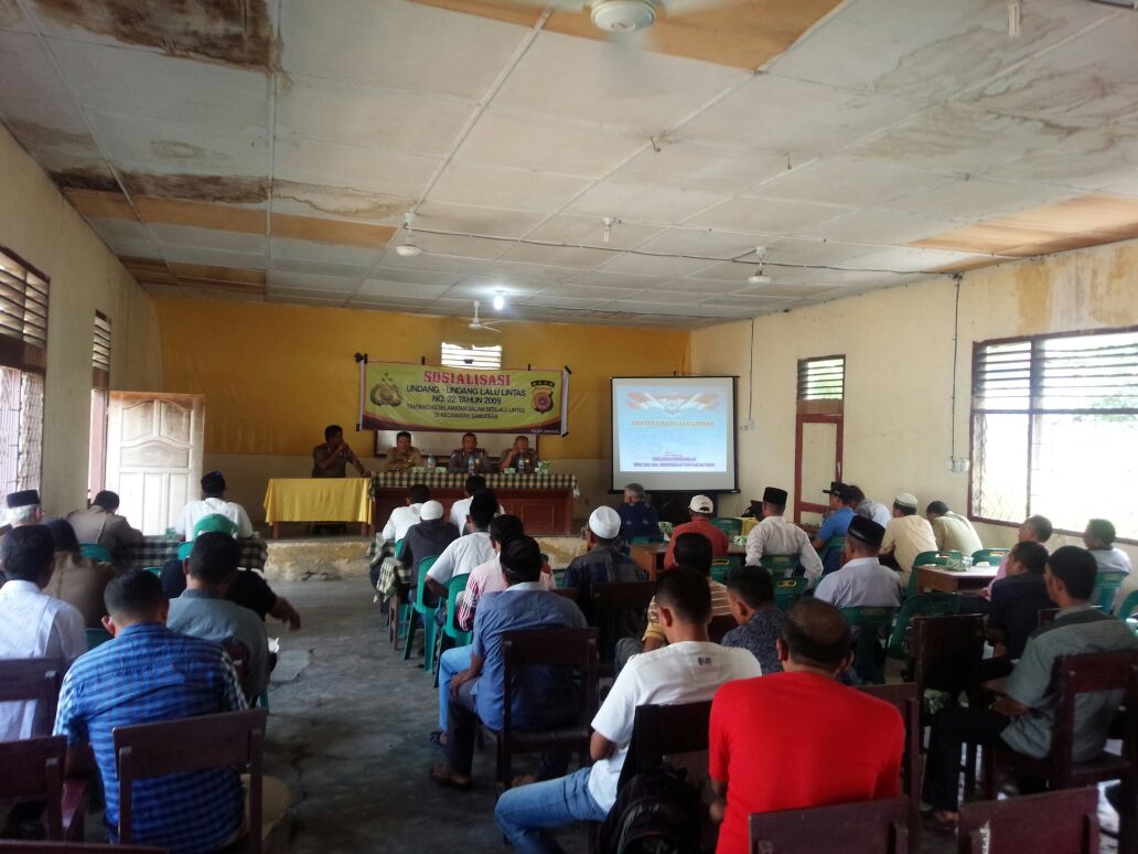Lhokseumawe- Kepolisian Resor Lhokseumawe Sektor Samudera melakukan sosialisasi Peratural lalu lintas No 22 Tahun 2009 tentang keselamtan dalam berlalu lintas kepada aparatur pemerintahan serta perwakilan masyarakat dari masing-masing desa setempat.