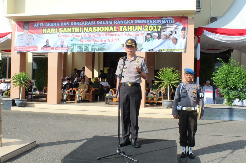 Lhokseumawe- Dalam rangka memperingati hari santri Nasional tahun 2017, Polres Lhokseumawe gelar apel akbar dan deklasrasi anti radikalisme di Mapolres Lhokseumawe.” Selasa pagi (24/10/2017)
