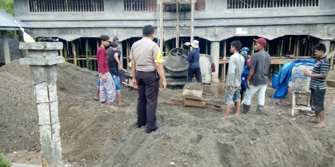 Lhokseumawe- Sambang Desa Bhabinkamtibas Polsek Kuta Makmur Brigadir Rizalul Azis tinjau pembangunan sarana desa di Desa Bayu Kecamatan Kuta Makmur Kabupaten Aceh Utara wilayah hukum Polres Lhokseumawe.”kamis (16/11/2017)