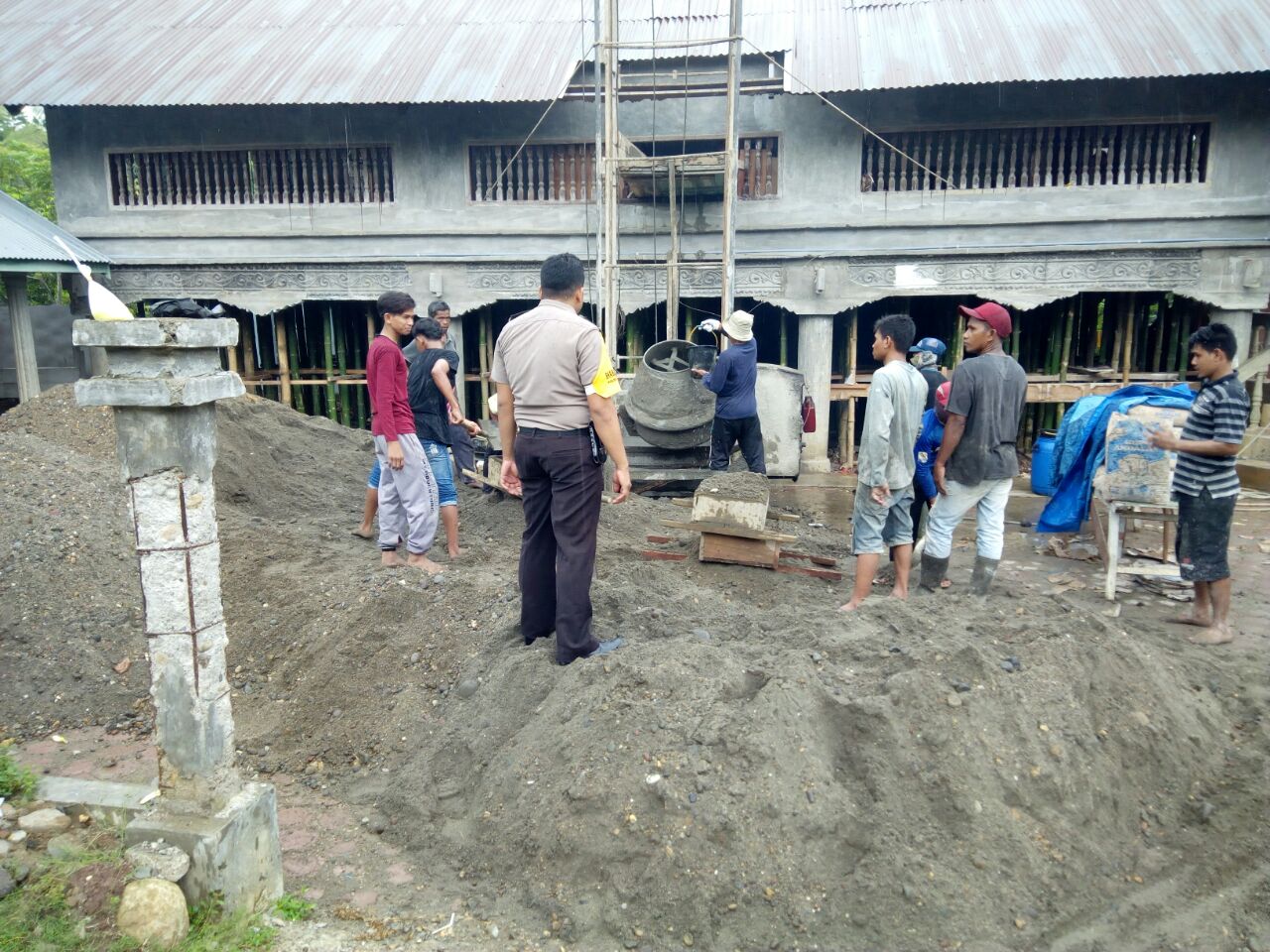 Lhokseumawe- Sambang Desa Bhabinkamtibas Polsek Kuta Makmur Brigadir Rizalul Azis tinjau pembangunan sarana desa di Desa Bayu Kecamatan Kuta Makmur Kabupaten Aceh Utara wilayah hukum Polres Lhokseumawe.”kamis (16/11/2017)