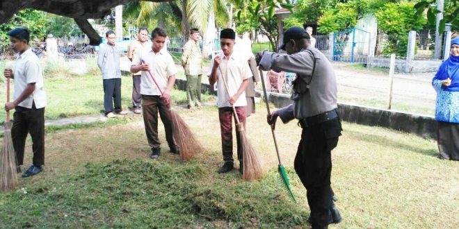 Lhokseumaew- Memperingati hari Pahlawan, Polisi Bersama peserta ziarah bersihkan makam Pahlawan Bujang Salim di Komplek kuburan makan Pahlawan Bujang Salim Desa Keude Kreung Geukueh Kecamatan Dewantara Kabupaten Aceh Utara.” Jum’at Pagi (10/11/2017)