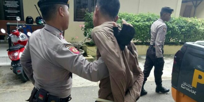 Lhokseumawe- Polisi Boyong terduga pelaku pencurian tabungan Mesjid Jamik ke Mapolsek Banda Sakti, pelaku ditangkap petugas kebersihan Mesjid Jamik yang terletak di jalan Samudera Desa Lancang garam Kecamatan Banda Sakti Kota Lhokseumawe.” sabtu siang (11/11/2017)
