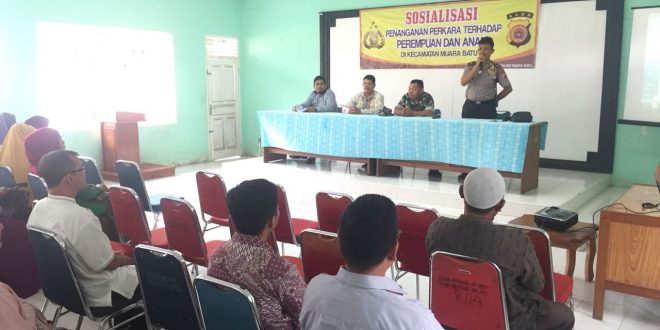 Lhokseumawe- Aparat Kepolisian Sektor Muara Batu dipimping Iptu Bukhori Gamcut melakukan sosialisasi tentang penanganan perkara terhadap Perempuan dan Anak di Aula Kantor Camat Muara Batu.” Kamis (23/11/2017) sekira pukul 10.00 Wib